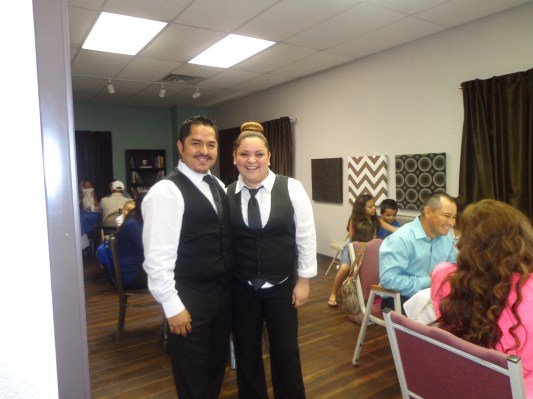 Andrés y Josy sirviendo al Rey y a los hermanos.